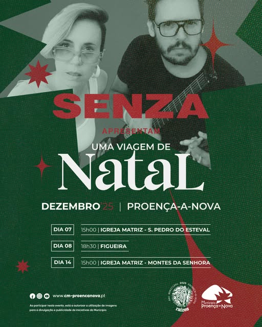Figueira Figueira, Proença-a-Nova, Castelo Branco, PortugalFado, Concerts & Music𝗦𝗲𝗻𝘇𝗮 𝗮𝗽𝗿𝗲𝘀𝗲𝗻𝘁𝗮𝗺 𝘂𝗺𝗮 𝗩𝗶𝗮𝗴𝗲𝗺 𝗱𝗲 𝗡𝗮𝘁𝗮𝗹O grupo Senza apresenta uma verdadeira 𝗩𝗶𝗮𝗴𝗲𝗺 𝗱𝗲 𝗡𝗮𝘁𝗮𝗹 nesta quadra festiva em Proença-a-Nova!Dia 7 15h00 Igreja de Matriz de São Pedro do EstevalDia 8 18h30 FigueiraDia 14 15h00 Igreja de Matriz de Montes da SenhoraMarque na agenda e venha ter connosco!