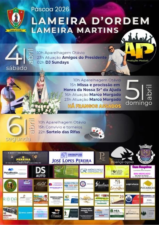Today we present the Poster of the Traditional Easter Holidays 2026! After storm Kristin that devastated the whole council of Leiria and all the existing damages, we also had to make a decision about our party and whether there were conditions to move forward. And here we are, committed and doing our best, hoping that… Read More »Tradicionais Festas da Páscoa – Santa Eufémia