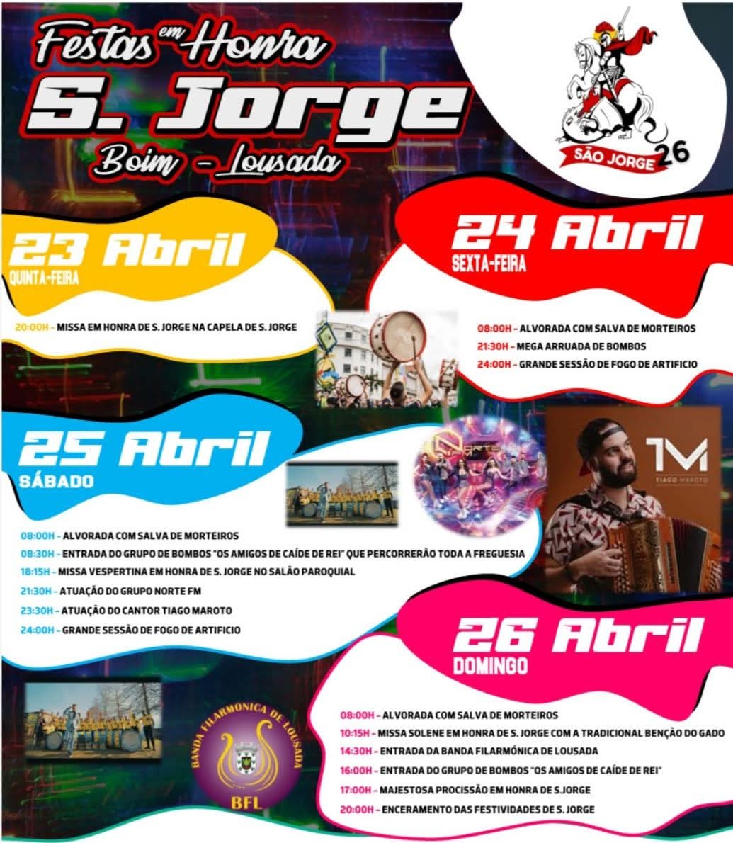 Guedieiros Guedieiros, Tabuaço, Viseu, PortugalFestas & FestivalsAs festividades em honra de São Marcos em Guedieiros oferecem um programa variado com bandas filarmónicas, grupos de bombos, artistas populares e o tradicional jogo de futebol. Programa: Quinta, 23 de abril: Salva de morteiros (17h) e Jogos Tradicionais (18h). Sexta, 24 de abril: Música com Inovação 3 (22h) e Paulo Ribeiro - Bandalusa (23h),… Read More »Festas de São Marcos 2026 – Guedieiros