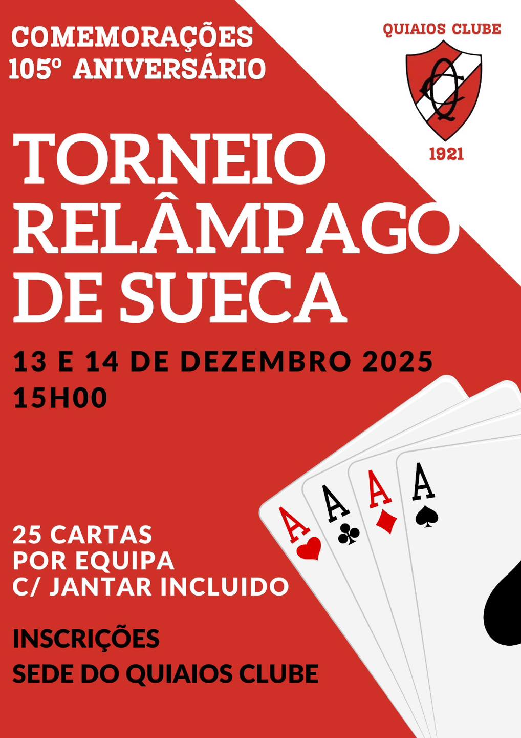 Nos dias 13 e 14 de dezembro, a partir das 15h, realiza-se na nossa sede mais uma edição do torneio de sueca.