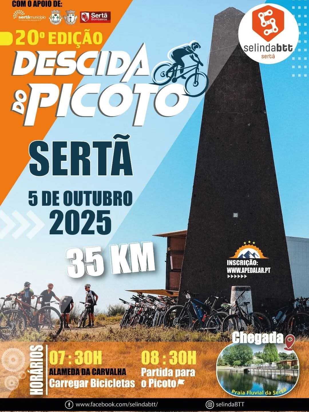 Sertã Sertã, Castelo Branco, PortugalAs inscrições para a vigésima edição da 𝗗𝗲𝘀𝗰𝗶𝗱𝗮 𝗱𝗼 𝗣𝗶𝗰𝗼𝘁𝗼 estão quase a terminar! Tem até dia 30 de setembro para se inscrever nesta icónica prova, que se realiza a 𝟱 𝗱𝗲 𝗼𝘂𝘁𝘂𝗯𝗿𝗼. Regulamento e inscrições disponíveis em apedalar.pt/eventos/4009/info Mais informações em cm-serta.pt/lista-eventos/1805-descida-do-picoto-2025 Organizada pela Selindabtt, a 𝗗𝗲𝘀𝗰𝗶𝗱𝗮 𝗱𝗼 𝗣𝗶𝗰𝗼𝘁𝗼 conta com o apoio do… Read More »Descida do Picoto – Sertã