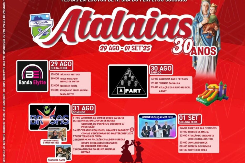 A melhor festa do ano está para vir e o cartaz acabou de sair Não fiques de fora da gandaia, vem ver o nascer do sol à Atalaia! The best party of the year is… Read More »Festas em Louvor de Nossa Senhora do Perpétuo Socorro – Altalaias