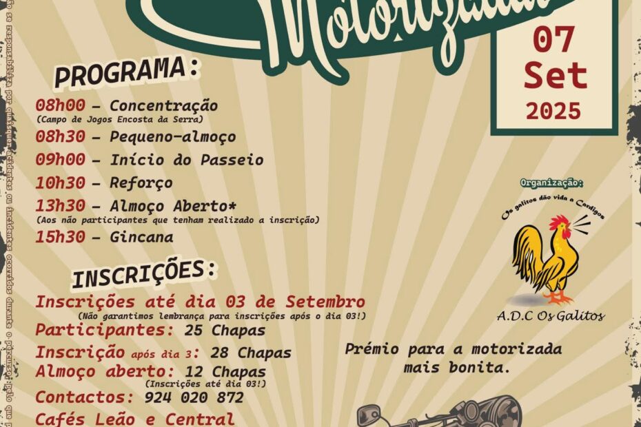 Bakery Bar!! ️!! ️!! ️!! ️ The time has come to show you this beautiful poster, and with it, the presentation of yet another event that ADR-Associação Desportiva de Requeixo has prepared for the Request… Read More »17° Passeio Motas e Motorizadas